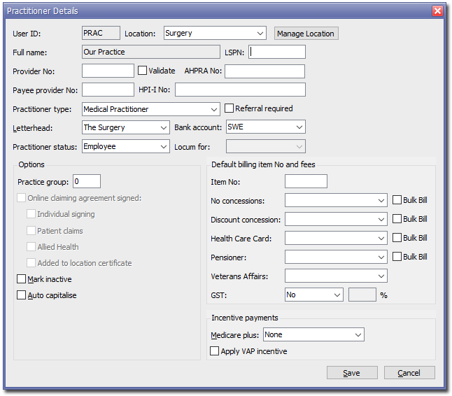 - The User ID (usually the user's initials) is utilised throughout MedicalDirector Pracsoft to identify users and Practitioners.