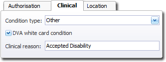 For White Card holders, you are required to enter the Clinical Condition Treated, or Accepted Disability. This is the same information you record on the voucher currently.