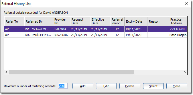 - If this patient has already had referrals recorded for them, the Referral History List window appears.