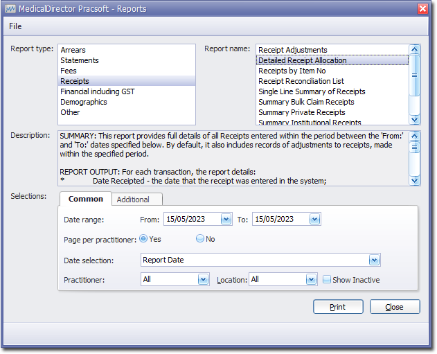 - Indicate whether results for each practitioner will be printed on separate pages.