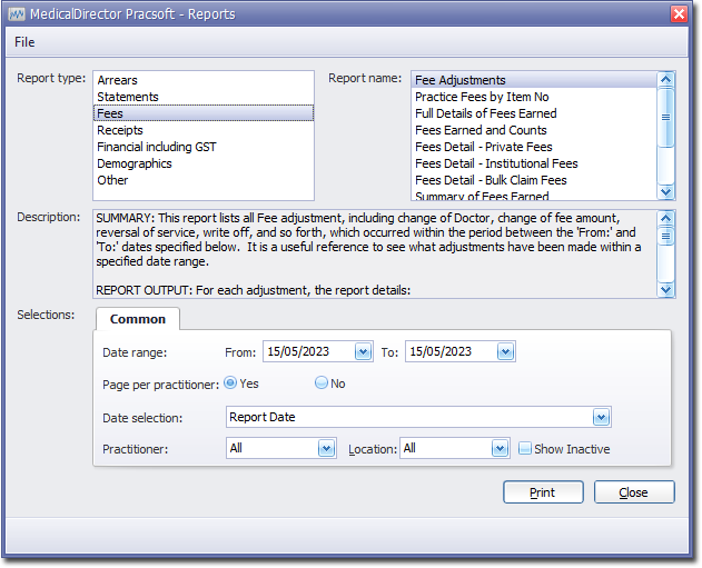 - Indicate which practitioner/s and location/s you want to limit the report to.