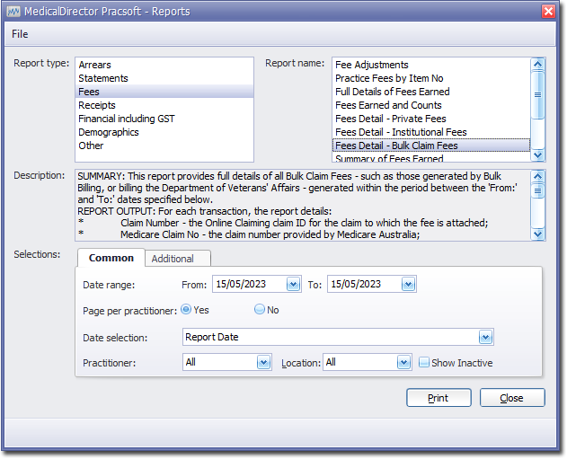 - Indicate which practitioner/s and location/s you want to limit the report to.