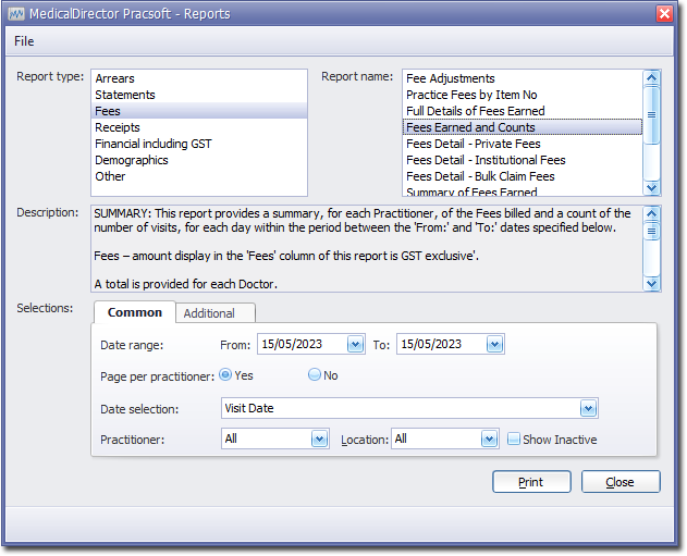 - Indicate whether results for each practitioner will be printed on separate pages.