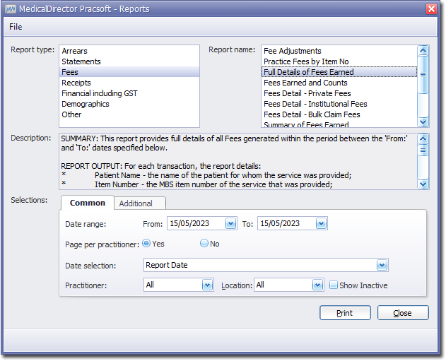 - Indicate which practitioner/s and location/s you want to limit the report to.