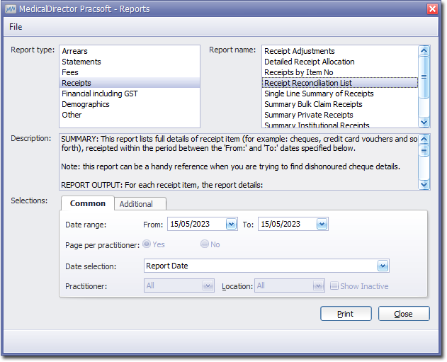 - Indicate which practitioner/s and location/s you want to limit the report to.