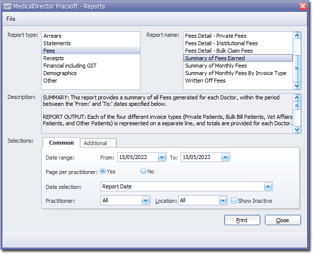 - Indicate which practitioner/s and location/s you want to limit the report to.