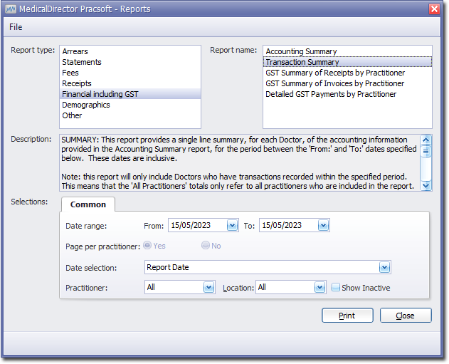 - Indicate which practitioner/s and location/s you want to limit the report to.