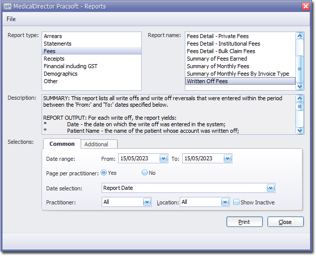 To Generate a Written-Off Fees Report