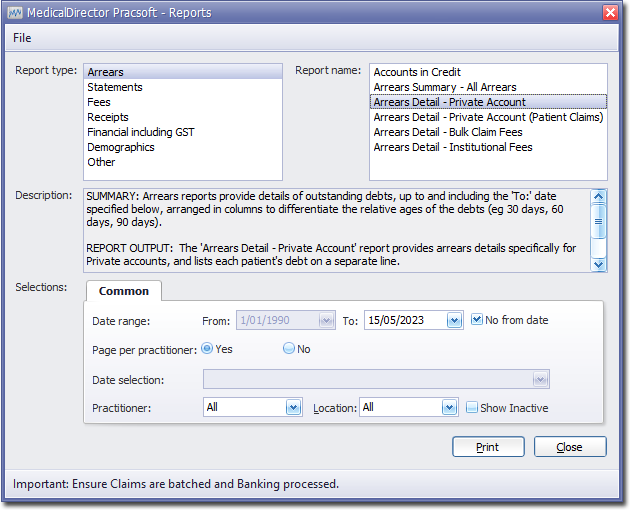 - Select Reports > All Reports. The Pracsoft Reports window appears.