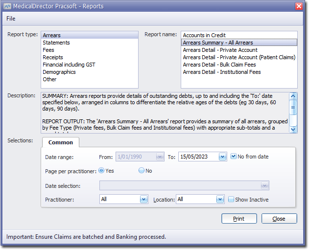 - Within the Report Type section, select Arrears.