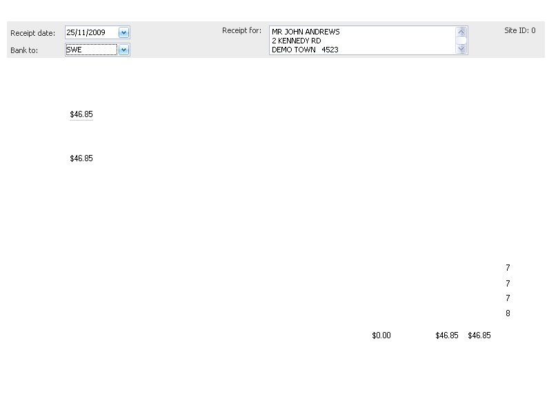 Then, simply click Receipt to issue a receipt for this account. In the example above the patient would still owe the practice $46.85 (as shown at the bottom of the Payment Allocation section), which they can pay at a later date.