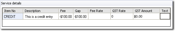 When recording a visit for the patient or institution, enter the service item number as 'credit', and the amount paid as a negative value.