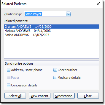 (Optional) Pracsoft allows you to easily update selected fields in one or more related records. This is useful if you have imported records from another system and the relationships have been lost.