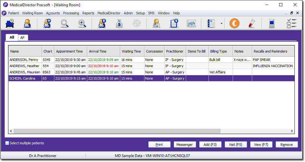 The Waiting Room is where you track the movements of patients in your actual Waiting Room at your Practice.